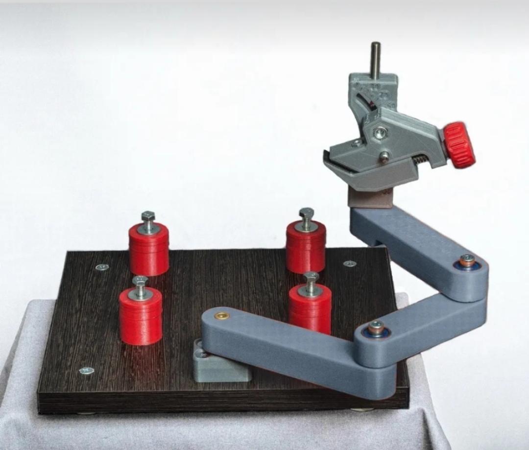 This tool is made of three arms and an angled clamp that is attached to the front of the table stone and is used to sharpen sewing scissors. I need a map or exact dimensions to make it.