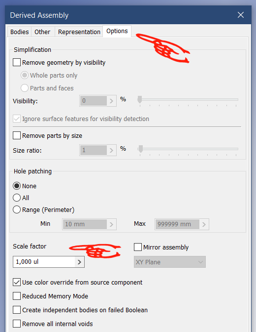 How can I manage or change the scale in iam. files in Autodesk Inventor? Oscar Roberto Tellez Humerez 7 Apr, 2020 11:25 PM Sometimes, it is useful to change the scale in assemblies, but there isn't a direct way to make it. 2 Answers Danny Key Answered on 8 Apr, 2020 06:12 AM Hi Oscar, i think the easiest way is to make an idw (drawing) Name all dimensions with letters, and then place the dimensions in a column for each scaled model. Greetings, Danny CadCloud Answered on 8 Apr, 2020 08:11 AM Use Derived. Ribbon-Manage-Derive Derived.png