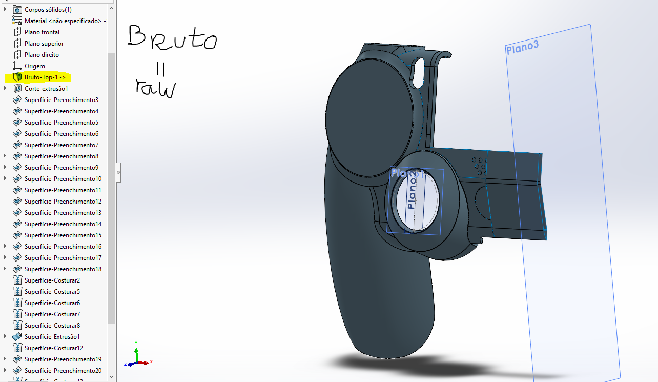 I am trying to use this model of dualshock 4 that I have found in grabcad. The problem is: the file was made in other software (I think fusion 360) and I am using SolidWorks. In Solid I can't cut this raw solid, I can't offset it, basically, I am stuck. Can u guys help me?