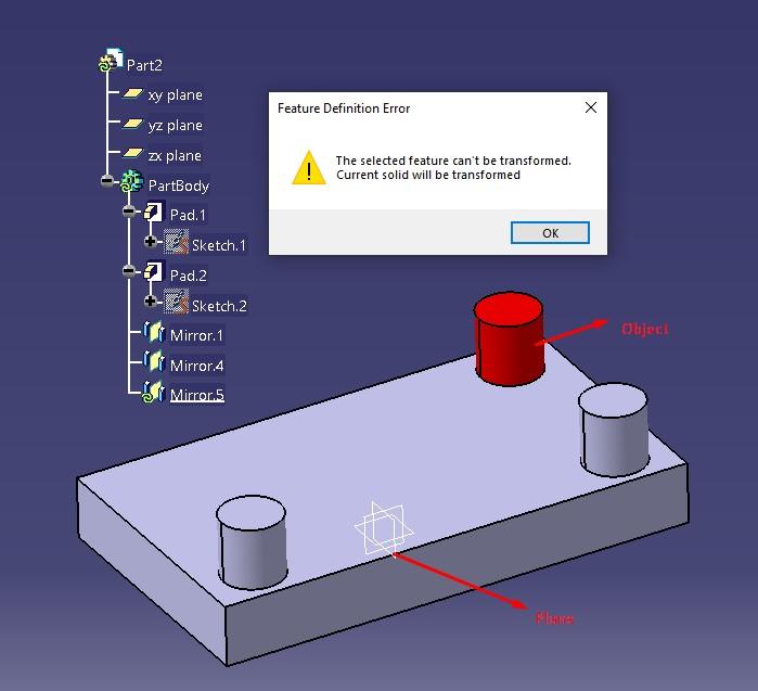 I want to re-mirror an object I previously mirrored with another plane in catia v5, for which I get an error. please guide me. thank you