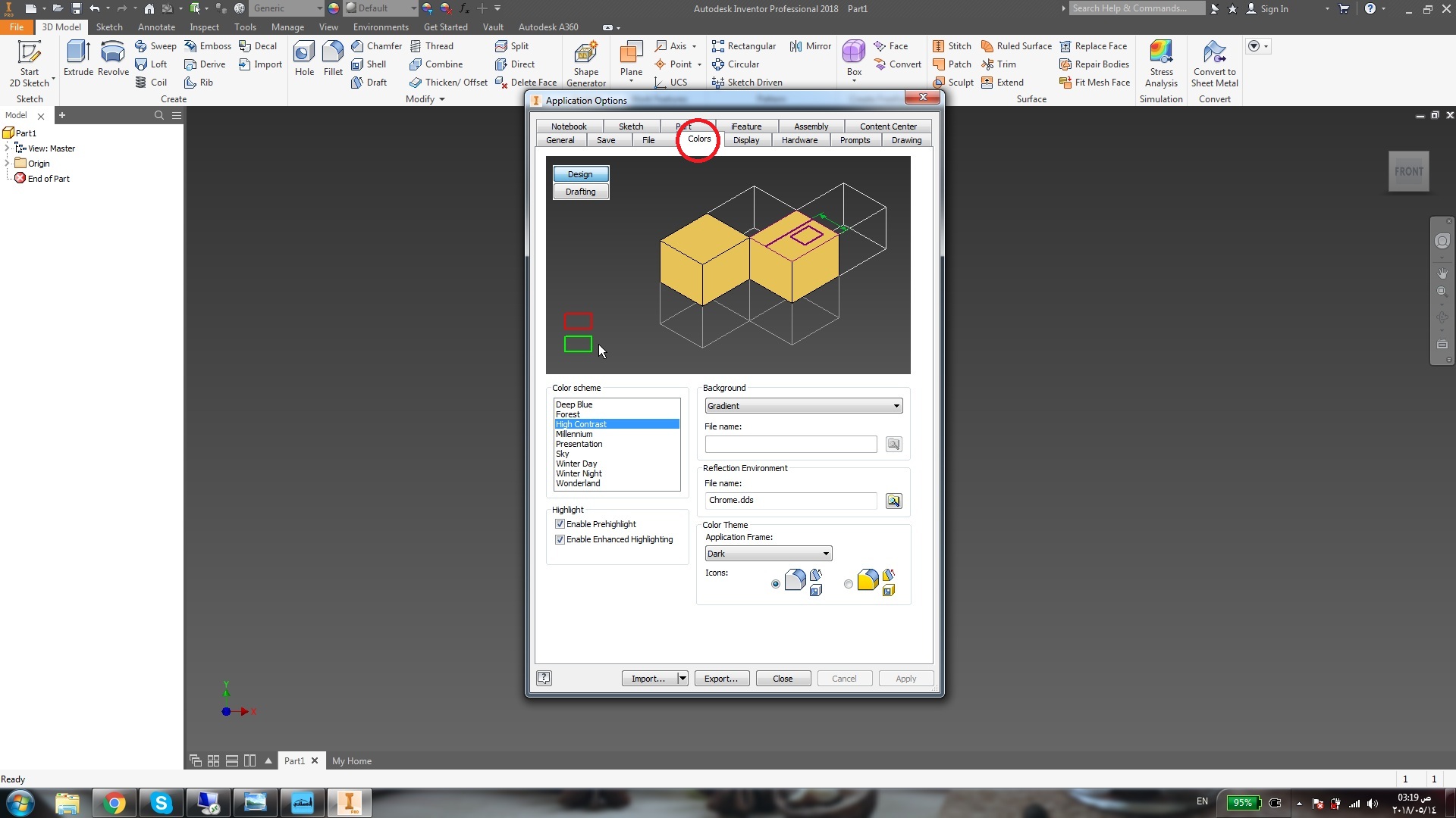 How do I change inventor background?? Theunis Kotzee 10 May, 2018 12:14 PM Is it possible to change the background color of inventor in the presentation files. 3 Answers Said Ibrahim Answered on 14 May, 2018 01:22 AM Hi see the attached photos regards Said Ibrahim 02.jpg 01.jpg Lorenzo Bonardi Answered on 11 May, 2018 06:03 AM Tools- Application options- Colors- Background TimX24968B Answered on 11 May, 2018 04:41 PM i'd suggest going to google before asking a question like this, but as said above.