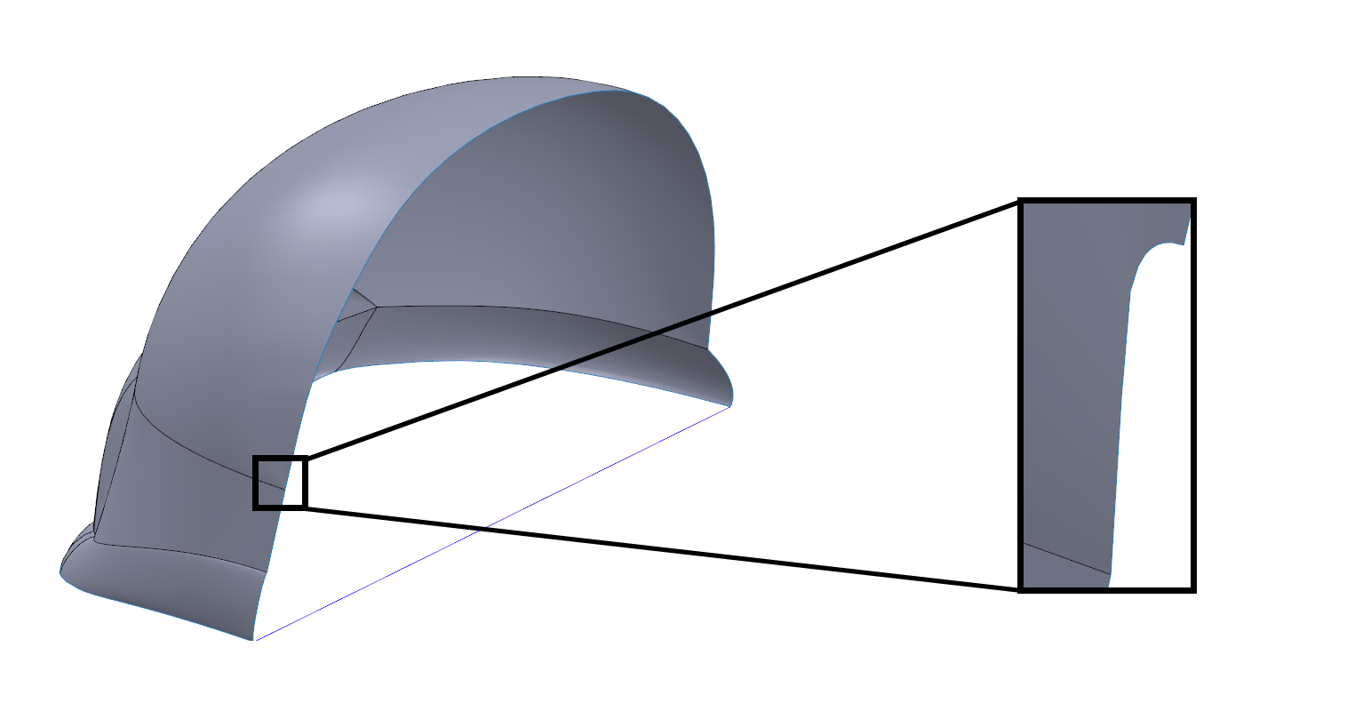 How do I create a solid from this surface? Soumya Khanna 16 May, 2019 07:58 AM I'm trying to make a helmet. I've made the surface model (pretty crudely, I'm new to surface modeling) and now I'm trying to get a solid. Thicken feature doesn't work, neither does offset. Help? helmet2.SLDPRT 1 Answer FredSWUG Answered on 16 May, 2019 10:20 PM There is a small defect in the model. See attached image. Defect.png