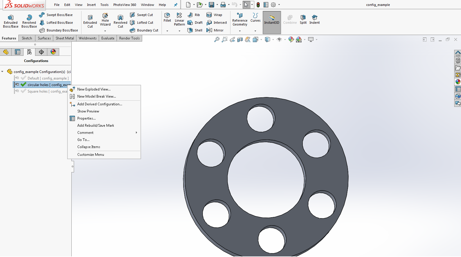 I made a part and made two configurations of it. The part is not being used in any assembly and still I can't delete the configuration - neither by hitting delete button nor by right clicking. The right click options hasn't got any option to delete. I have attached a screenshot of the situation (SolidWorks 2017). I read many answers on different forums but couldn't get the right one for this.