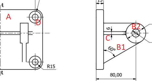 *Sketch and support "B": extrude "B1" and "B2"