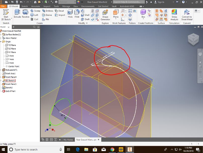 How do I fix the self intersecting loop in my 3D sketch?