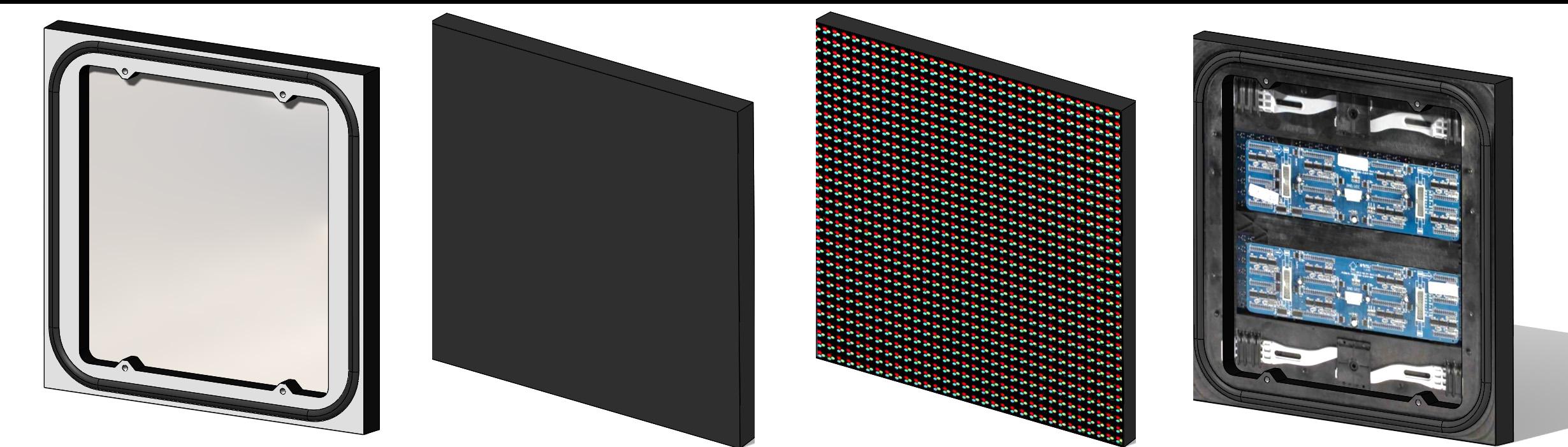 My job is designer led screens and I have never modeled each pixel but rather the modules and added images on them. I do not think you should model dels panels with all pixels in 3d. There are many ways to illustrate what you want, everything depends on your need. But I doubt that modeling each pixel and then simulate lettering is realistic.