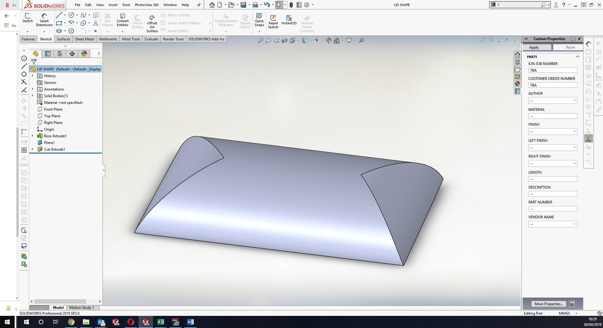 Continue as needed by adding more details, or converting back to a solid by closing off the "bottom" with a Planar Surface. Or by using the Thicken command.