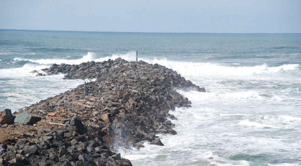 1. Make a simple drawing with the rough geometry of the fender (not the detail of the rocks) and apply one or more rock textures on top of them to give the "visual feel" of realism to the model. This won't work for you if you intend to actually use the real geometry to do some kind of validation (such as a CFD simulation to assess the efficiency of the fender and its interaction with water).