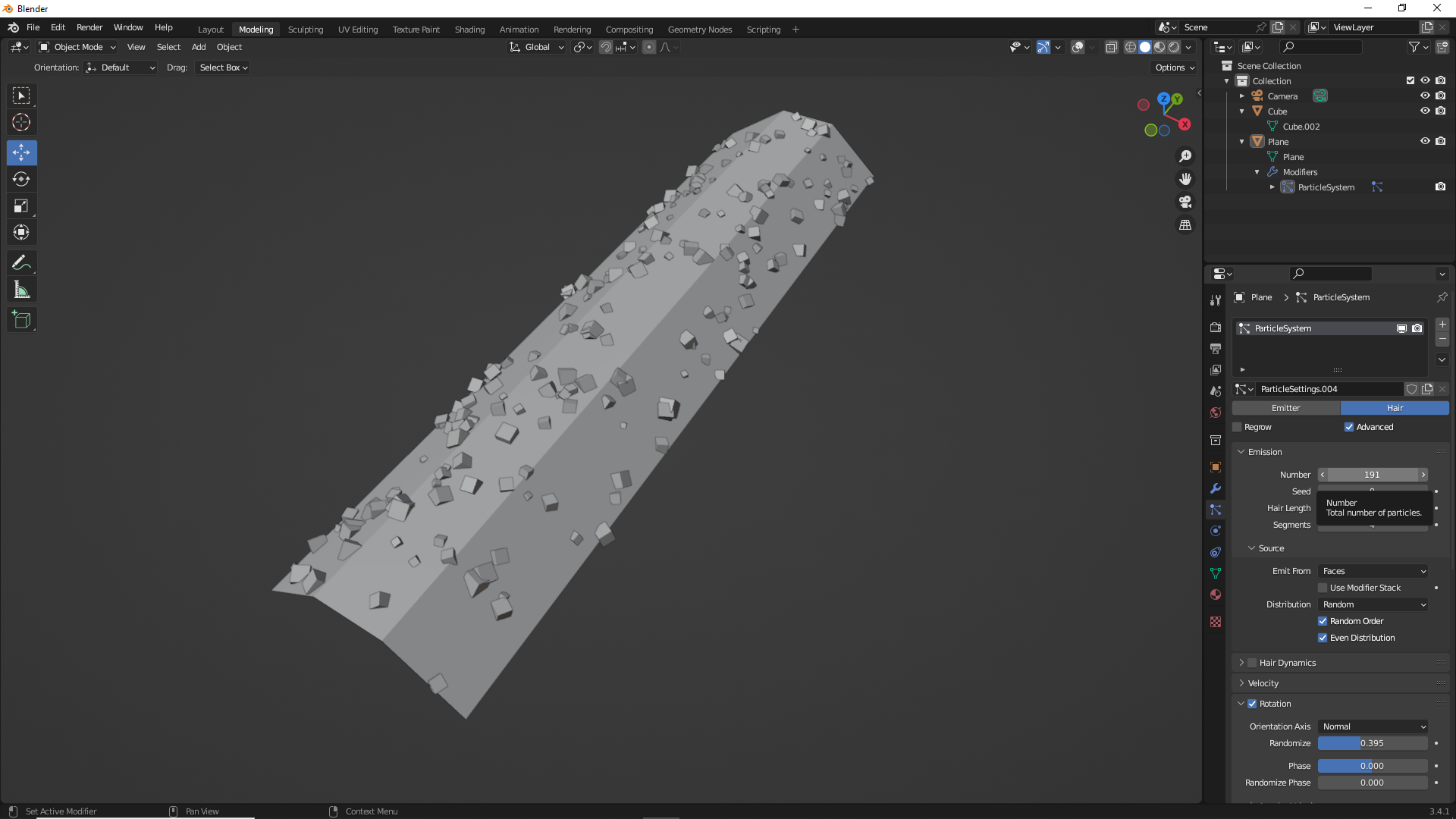 2. Create the defense in another application, such as BLENDER, which can generate multiple objects (particles that represent rocks) of various sizes and unlimited quantity on a surface (such as an embankment or basic geometry that you draw as a reference). If you really need to process this geometry in Solidworks, you could import it as surfaces of triangles.