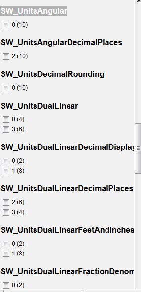 To better search for parts in Workbench you can add custom properties to your SolidWorks files. However, I'm experiencing Workbench picking up weird properties from my files such as SW_UnitsDecimalRounding, SW_UnitsDualLinear, SW_UnitsAngular, etc (see attached image). When I Google such properties it seems they are tied to the document properties/macro code, but I haven't intentionally added anything like that to my parts.