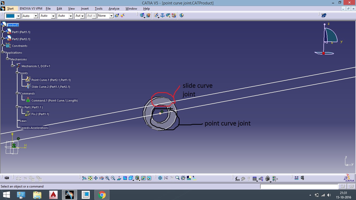 If you want to simulate with slide curve joint, just add one more point curve joint. Than DOF will be zero.