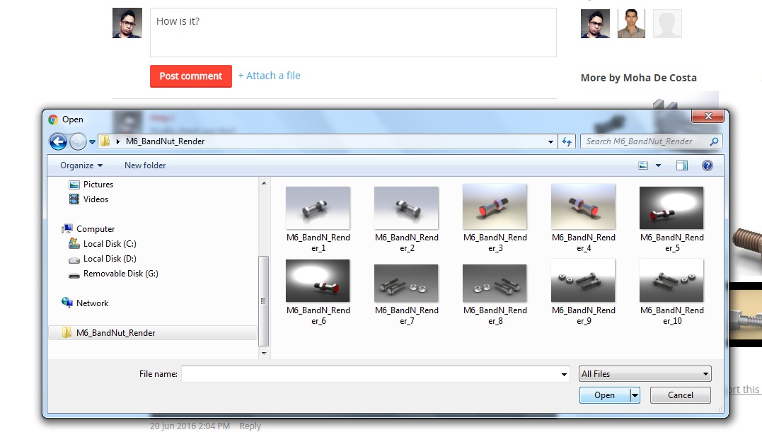 Step 3: Then Add a comment, and mean while select the 'Attach a File' link and browse the location where the rendered file is saved on your PC.