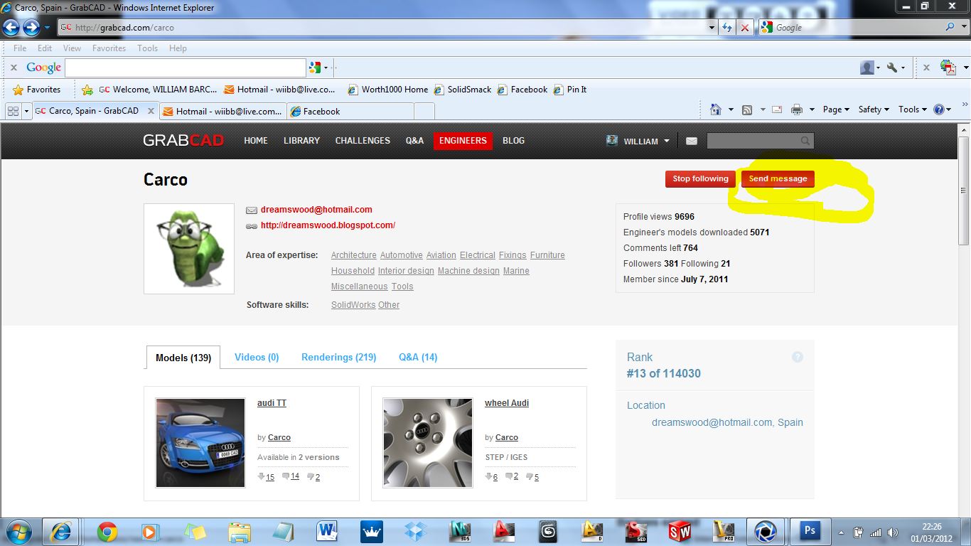 I know I must go to engineers´s profile, guys... but when I write my message, the SEND buttom doesn´t work... it continue in off for me.... I don´t know if all can understand I say...Perhaps, thx a lot ;)