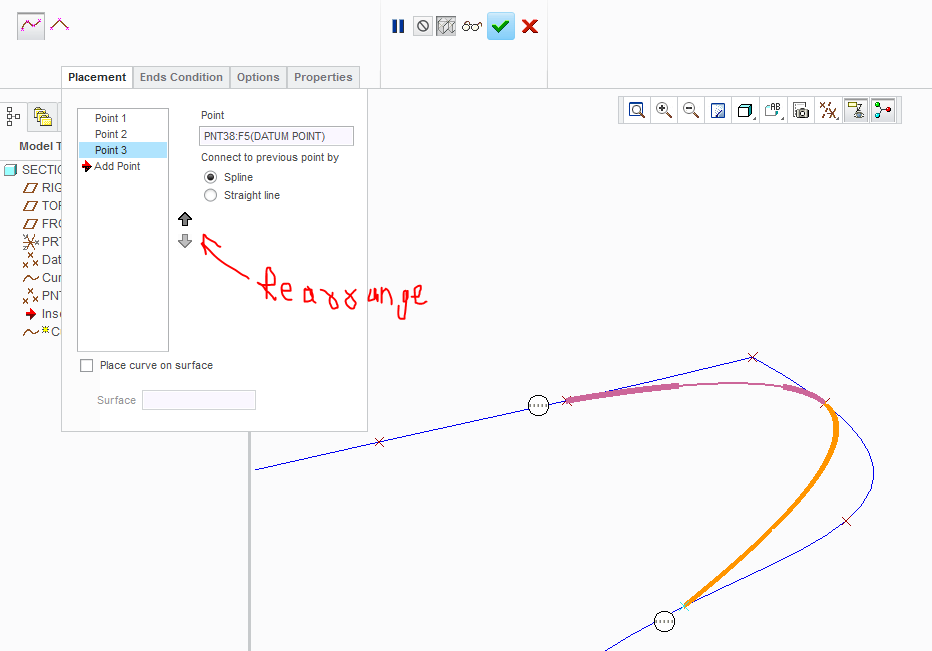 Step 2. Edit definition the curve. Omit the remaining two (Both point side of new point) points in curve command.