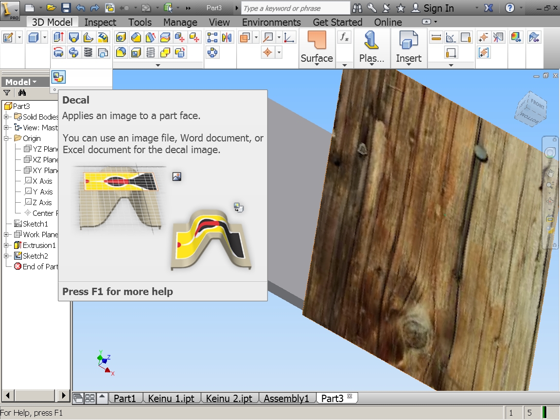 I am able to create the entire 3D model, but now I am stuck with the normal white shade color. I want to apply a wood pattern to my 3D model, but I dont know how to do it. Can someone help?