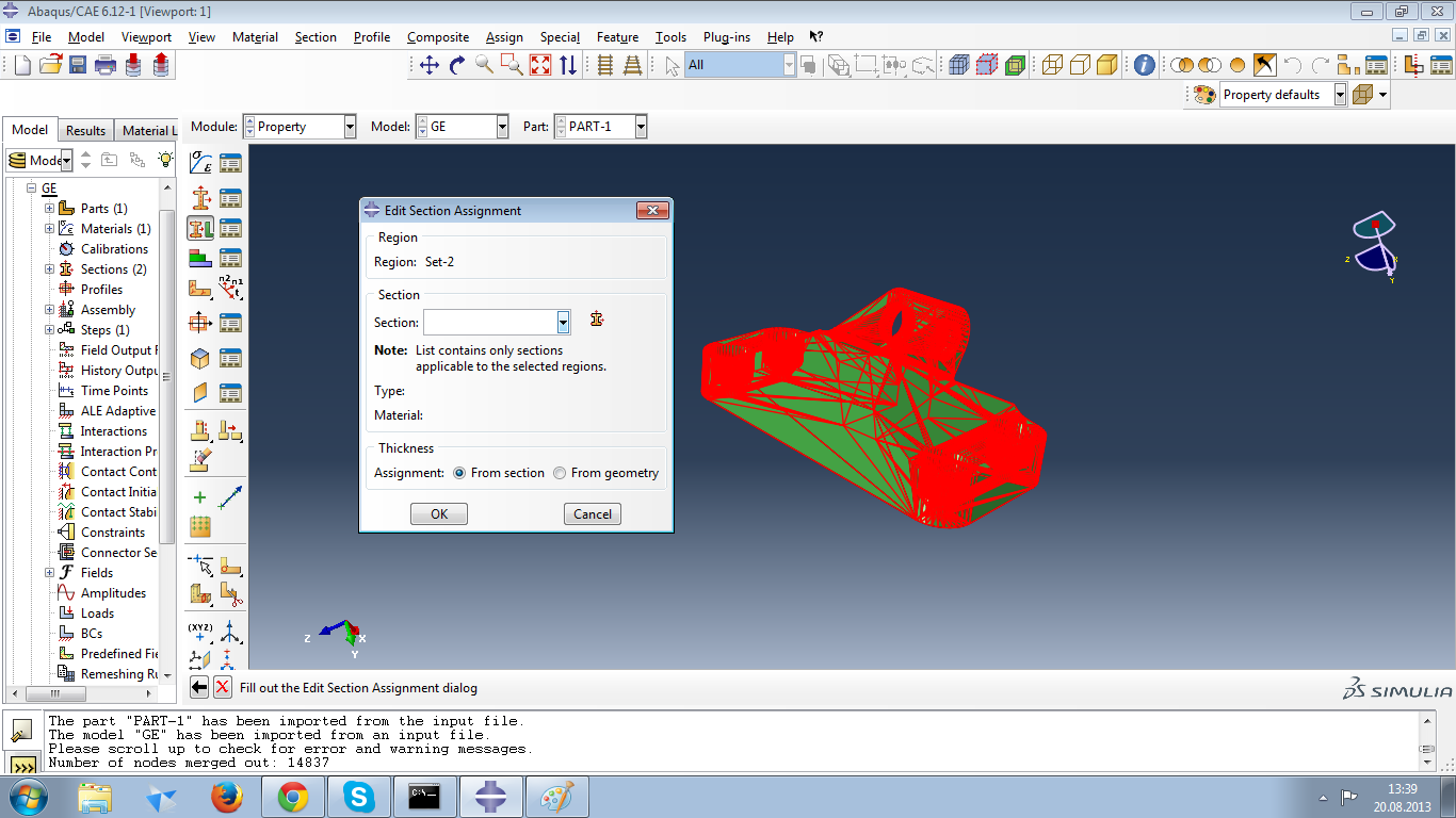 How to assign a section for GE bracket challenge part file in Abaqus?
