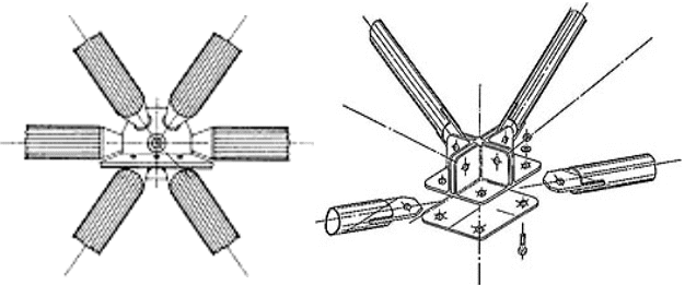 PS: one image shows a metal chair with round pipes for which they adopt solution 2 (crushing the ends) and the other image shows a structural knot that uses a sheet to join the different profiles that meet in said knot .