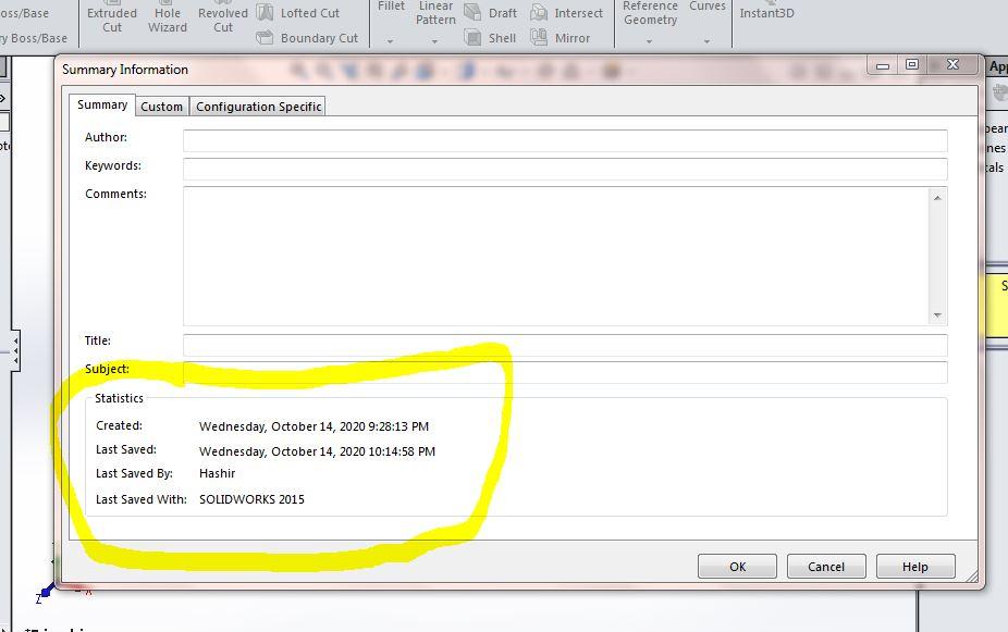 How to change the date of Solidworks Part? Ibrahim Omer 14 Oct, 2020 05:51 PM Kindly tell me, how to change the date of a part in Solidworks? Date.JPG 3 Answers Alazar Answered on 15 Oct, 2020 07:49 AM use "Total Commander" Files > Change Attributes... Zrzut ekranu 2020-10-15 094805.png Ashirbad Sahoo Answered on 15 Oct, 2020 12:43 PM Go to Change attribute -> change Date/Time -> date nd change to your required date and save your model cj mov Answered on 18 May, 2022 09:58 AM Hey guys it aint working any idea why