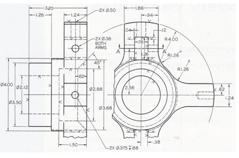 Help me dimension this component using the industry standard practice wherein it can be read by other engineers. Help me make a working drawing in this component. I already made the views the only missing is the dimensions. i used SOLIDWORKS 2014. i also attached the design from the book from which i based my drawing.