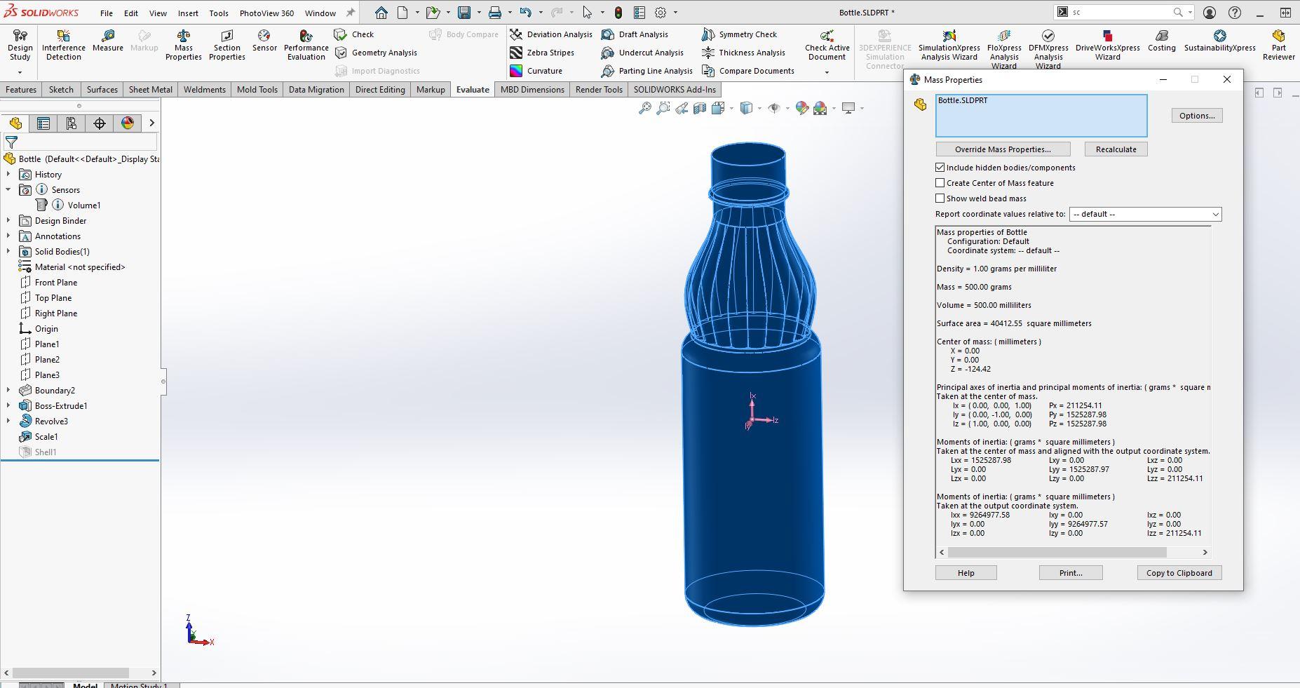 Example :- If bottle volume is 50 something after applying the shell command then the model before applying the shell command must be 550.