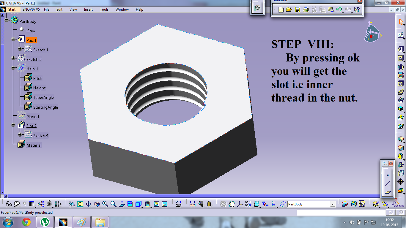 How to Create a hexagonal nut with internal threads on it? pachaperumal 11 Jun, 2013 04:05 PM Here am giving a eight step tutorial for it. 1.png 2.png 3.png 4.png 5.png 6.png 7.png 8.png Presentation1.pptx Part1.CATPart 2 Answers Vipin kumar Answered on 17 Jul, 2013 03:03 PM good efforts taha Answered on 5 Aug, 2013 03:58 PM thanks