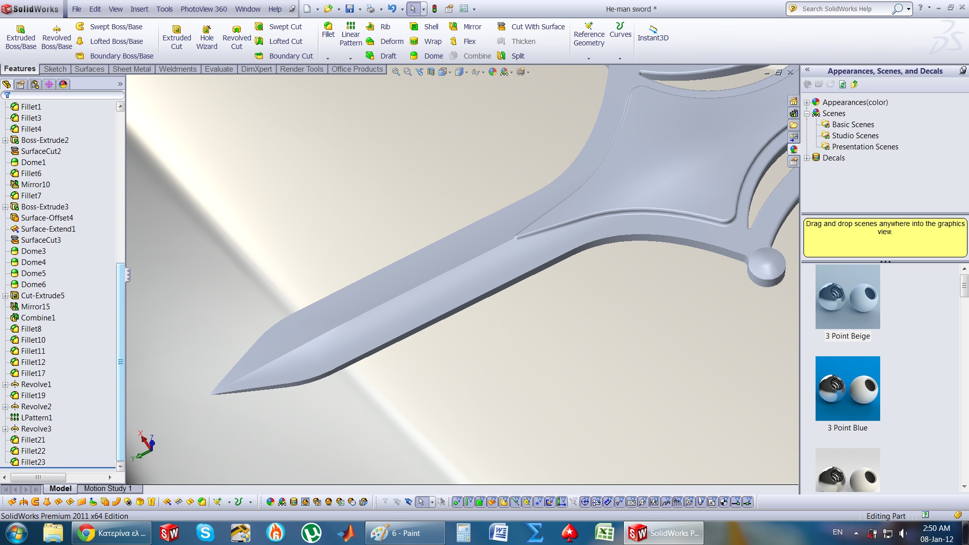 I am modeling a sword and i wanted to make something like a rib. I created it, but i can;t get a smooth surface from the rib to the rest of the sword. Does anyone knows how to do that??? I created the surface with boundary surface and assigned tangency to the surface but still its pretty rough..