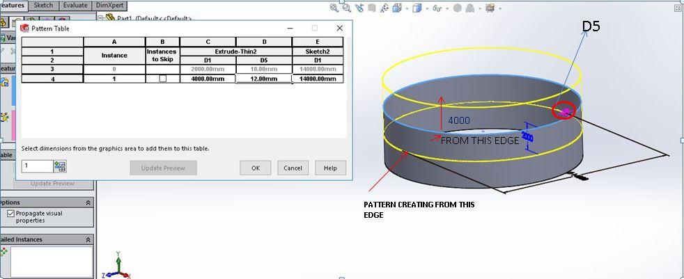 i had created a sketch from top plane of 14000mm and extruded it as thin feature of length 2000mm and thickness of 10mm. I want to create a variable pattern of different length and thickness from the first feature and i'm looking for the pattern to get stacked on top of each other. For your reference please check the image file and the pattern i want is not reflecting. Any tips and techniques would be much appreaciated