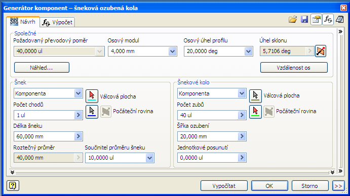 It is necessary to define the actual worm wheel. You have the ability to determine the helix angle, the length of the worm, face width, number of teeth, the center distance, etc ... (Image.2)