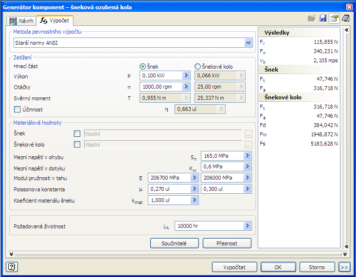 After creating a new report, see Proposal for Power Transmission panel -> Worm gear (Image.1)