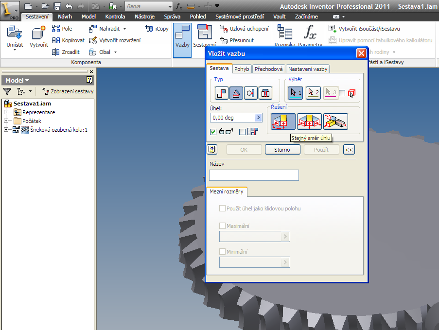 Now go back to the Assembly, where you select the Link -> Type (angle) -> Resolve (same angle direction). (Image.4)