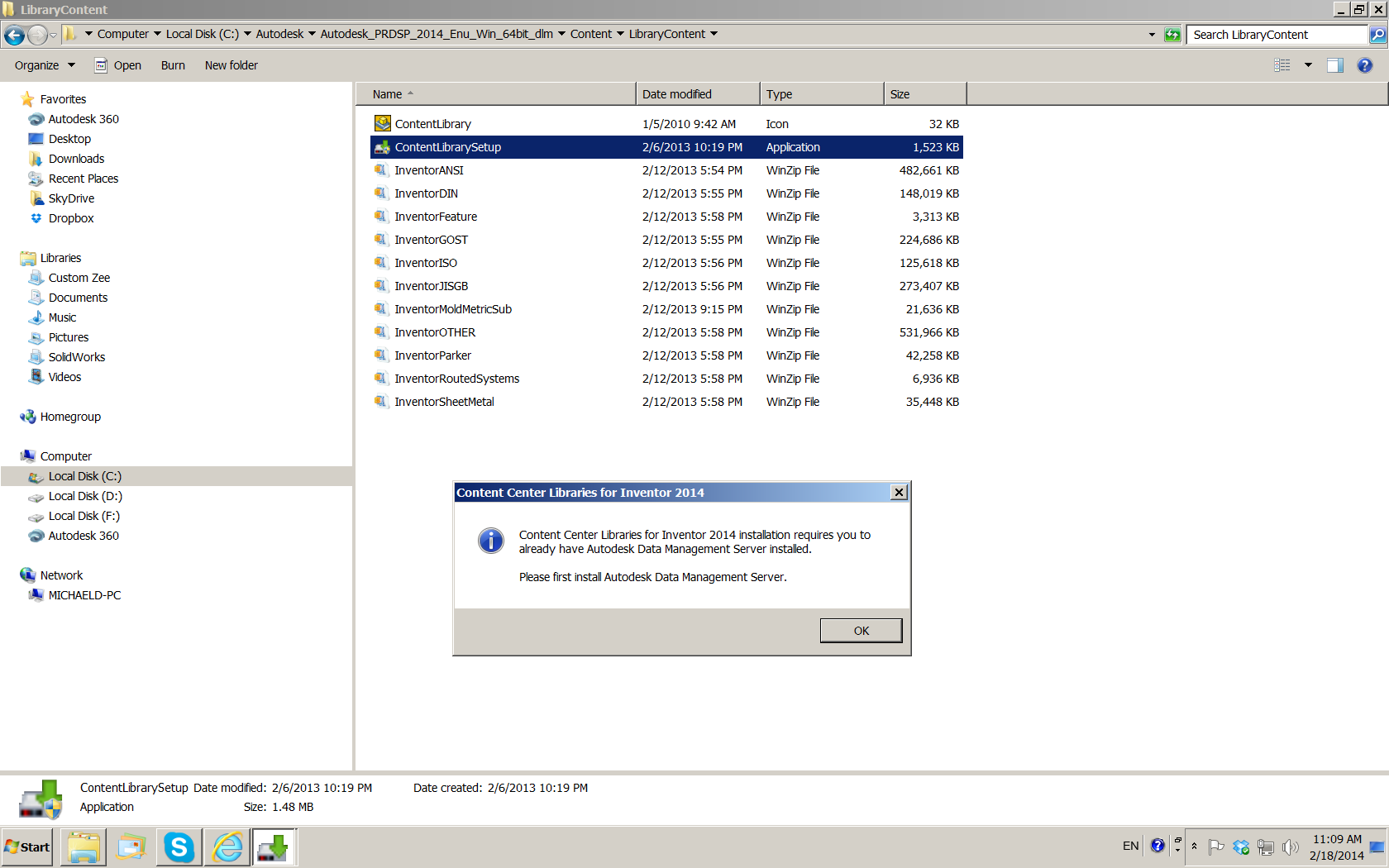 This forced Inventor to look for libraries on the website and asking me to sign in to download Data Management.