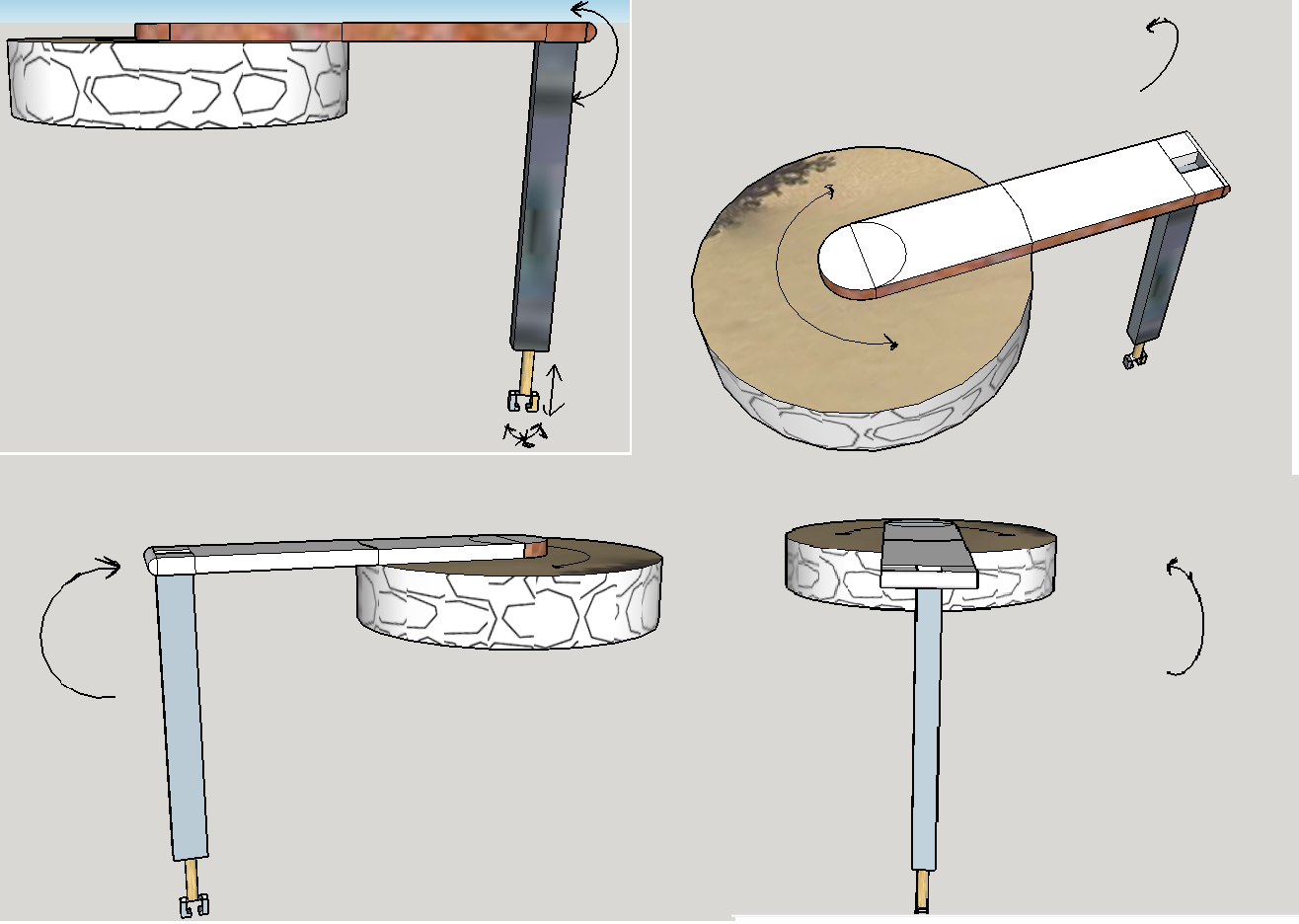 First joint from the start is supposed to rotate in clockwise and anticlockwise direction. And second joint is supposed to rotate in up and down direction. The end is with gripper which can be easy to move front and back. Gripper can also be a human hand structure.