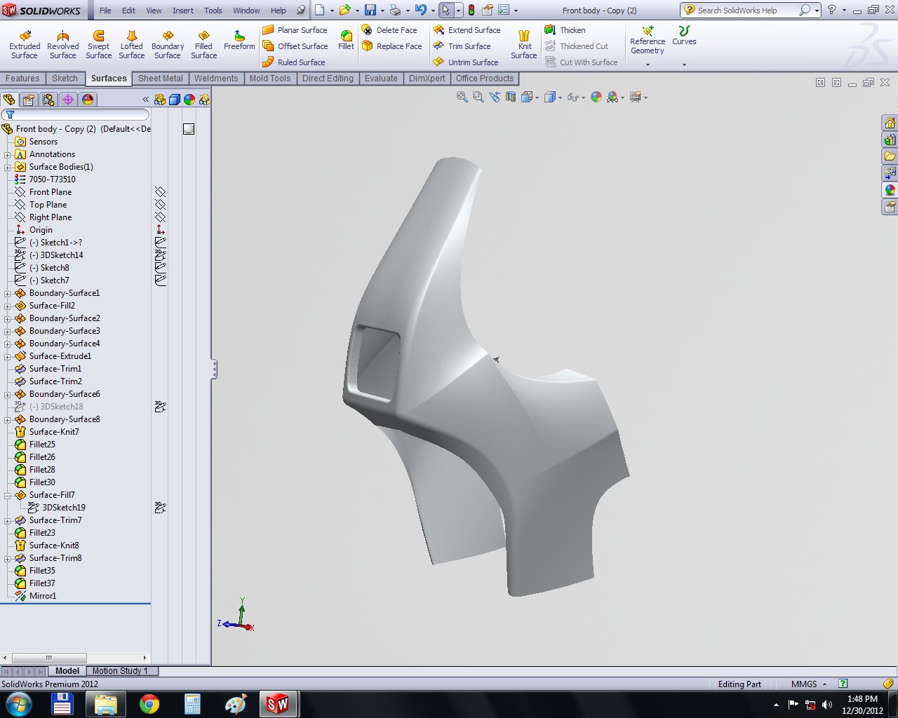How to design a model in Solidworks using surface