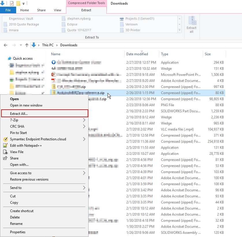 I am on Windows 10 and all I need to do is right click on the .zip file and select "Extract All..."