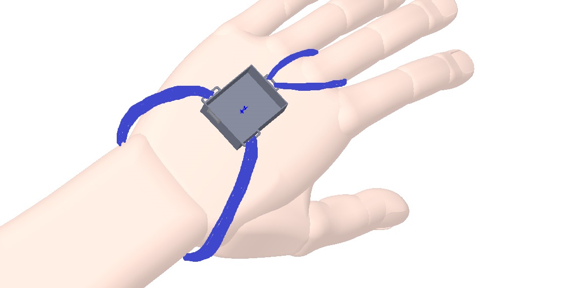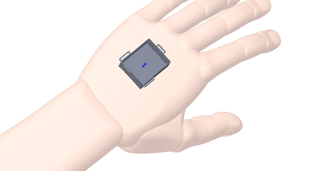 I have draw a device on the back of the hand. Now i try to draw a strap but with the slice function i am not able to draw the strap exactly on the hand. Does anyone have an idee how i can draw this strap?