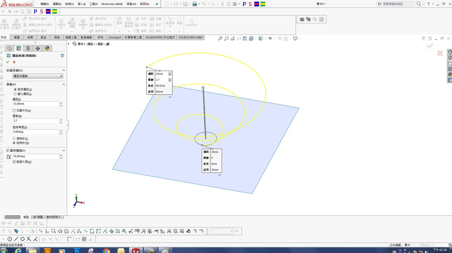 The spiral 'curve' can then be used as the path of a sweep feature if you're constructing a solid similar to the photo.