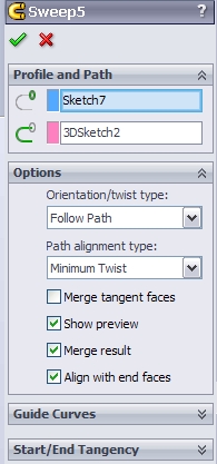 simple when you are creating a part which is to be continuous, first make a sketch of curves which may be combination of continuous lines, arcs etc as per the requirement and finish it. then again take another sketch in different plane normal to the first one and draw the required shape and finish it. then use sweep/swept feature select the required sketch and then select the guide/path which is your first sketch. you can have the design of which you desired