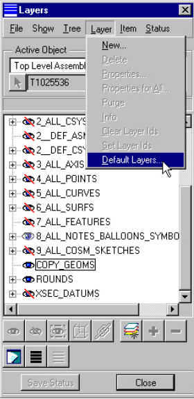 Let me get this right, you want to hide layers of parts in your assembly but keep those layers on in part file ! OK if that is the question then it is very simple. You may have noticed that there are two trees in any pro E file. One is the model tree and one is a layer tree. The default tree which is shown is the model tree. Now in the assembly file go to the layer tree and hide all the unwanted layers. After which u need to right click and click on save status option (otherwise next time when you open the file the layers will appear again). This way the layers in part file will be visible but the same layers when you see in your assembly are hidden. Hope this solves your problem. Happy Modeling :)