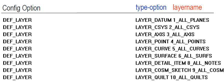 type-optionis the type of item that you want to place on that layer. The layernameis the name of the layer.