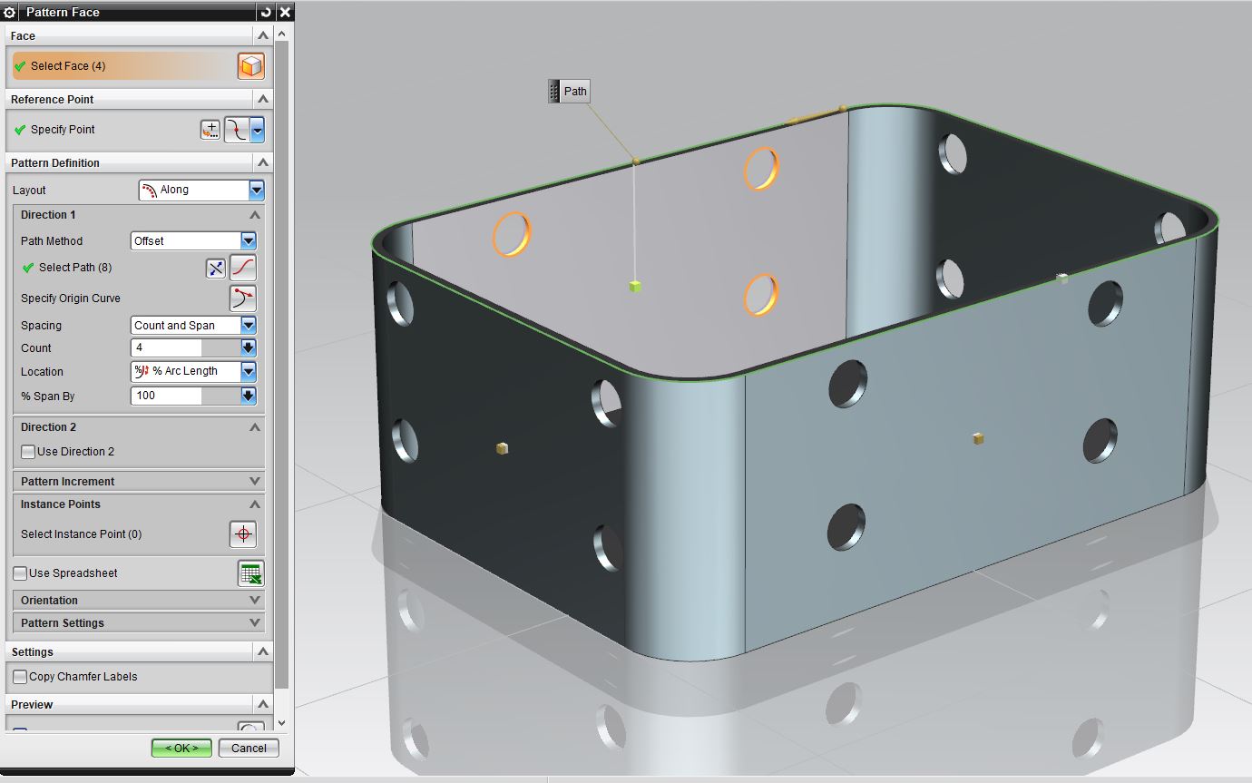 - If the patterns will always be the same, a derived sketch could be used. It would still need to be correctly positioned on the 2nd face, but it is better than a copy/paste