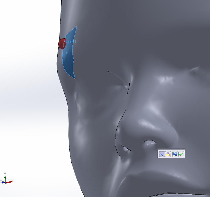 Is there any possibility to merge all of these small surfaces of the head into a single one? I need to make a mate between a point from a sphere and this face so i could freely drag sphere along all of the head surface. For now I can only mate this sphere with a single surface.