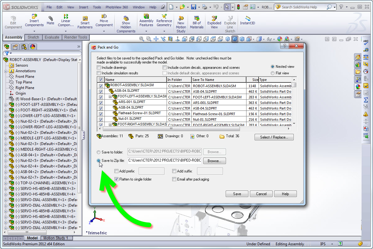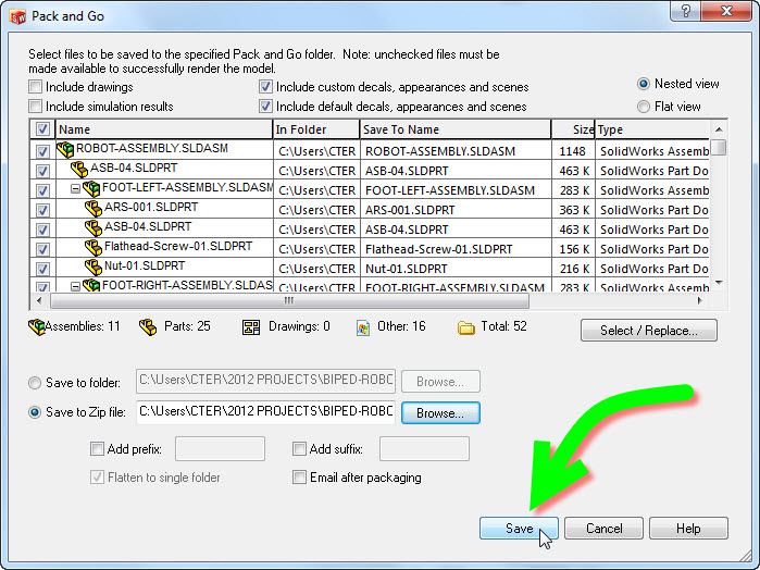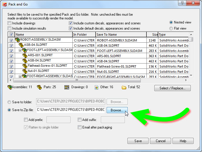 How to make a ZIP File using SOLIDWORKS Pack and Go Feature ?