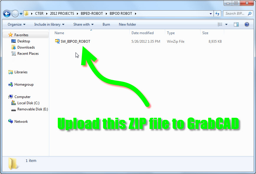 SolidWorks has a feature that allows you to open an ASSEMBLY and then create a single ZIP FILE that you can upload to GrabCAD that will have all the correct SolidWorks PART Files included... Go to "FILE" then "Pack and Go" then choose the the "Save to ZIP File" option. Click "BROWSE" and pick a place on your hard-drive to save the Zip file. SolidWorks will then create a single ZIP FILE that you can upload to GrabCAD. (The photos are backwards so start at the last one and go back to see in correct order... I downloaded them in the correct order but they were posted backwards)