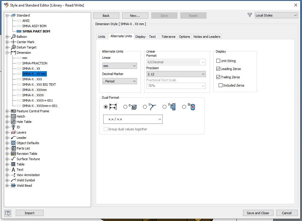 I did it by using one of the presets and i just need to make some minor changes such as the unit string, leading and trailing zeros. The only thing I think that updated the dimension to dual dimension is to choose the "dual format" style that I ignored it. This is what shows the dual dimensions.