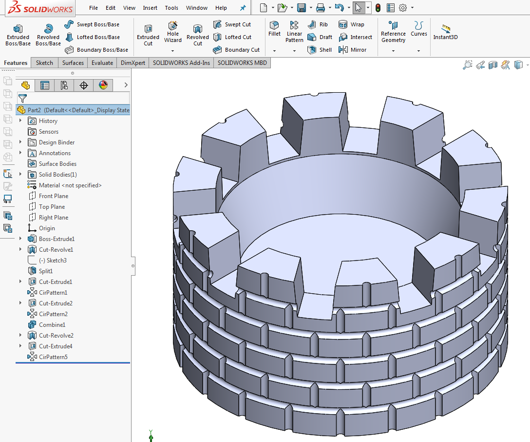 The horizontal lines appear to just go around the part continuously, so those could easily be formed with a revolved cut.