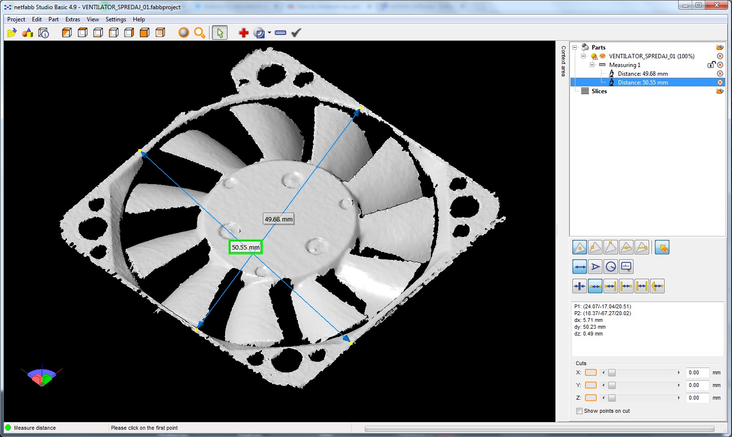 All I need is to measure the blades (actually one of them, because they are the same) to get the data I need to make a 3D CAD. I tried the way described here http://www.swtuts.com/?p=427 but it didn't work for me.