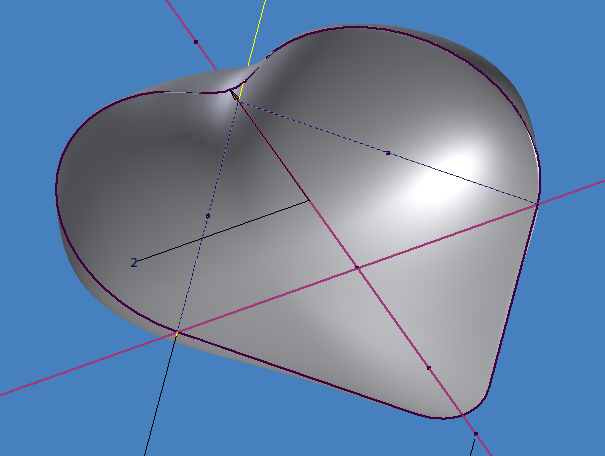 Draw the various cross sections, atleast 4, for the upper and lower points, as well as two lobes, and loft the 4 sections using the 2d heart as rail.