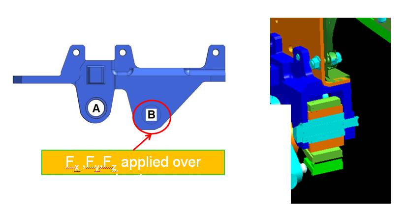 I need to create an FEA Model of casting in UG-Nx-6 Structures, In image position marked by "B" has load in all three x,y and z, in this hole there is a bush which slides over bolt in Y-direction.