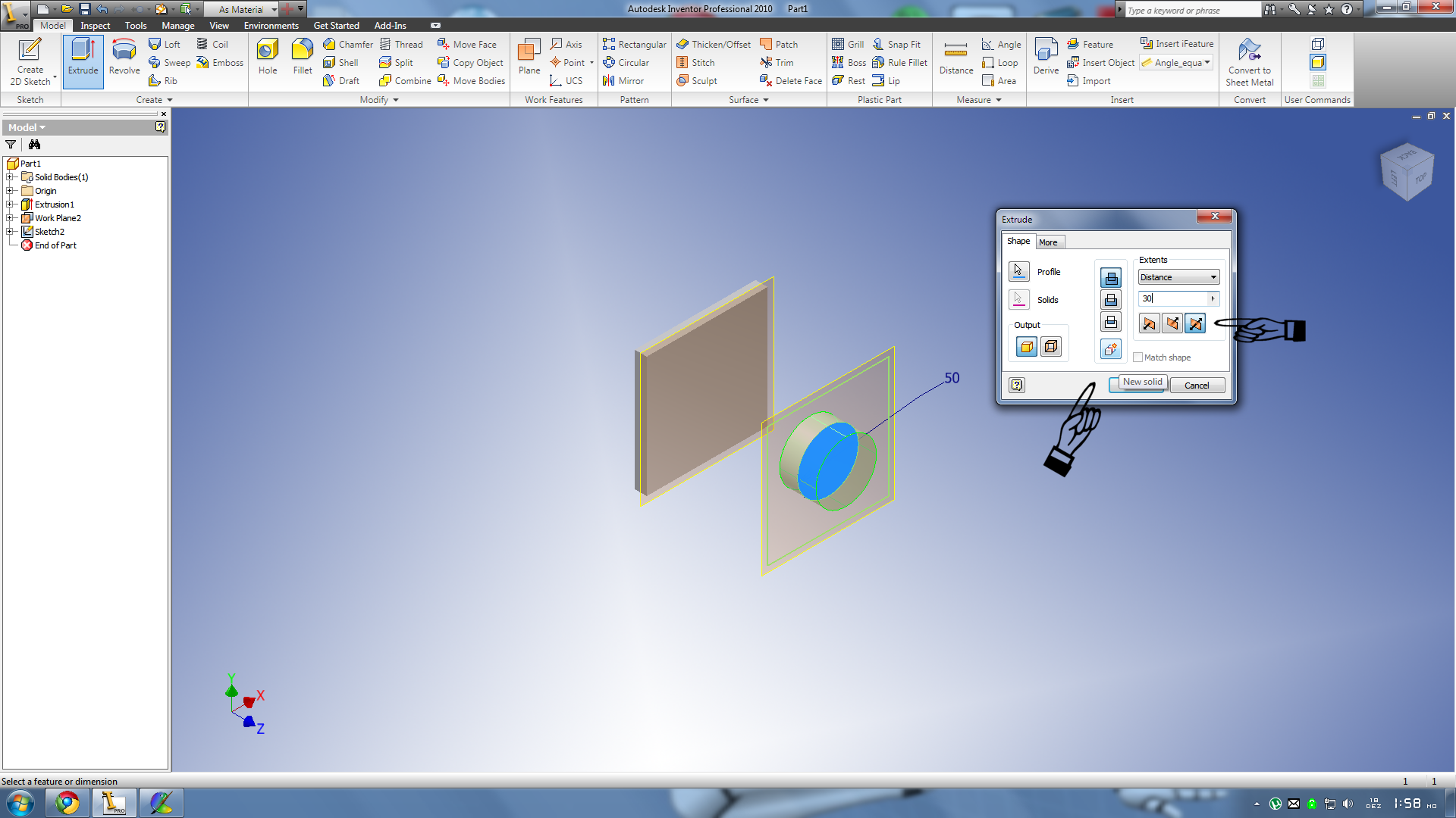 Hi, I work on part file of Autodesk inventor, where I need to extrude and offset a special part.