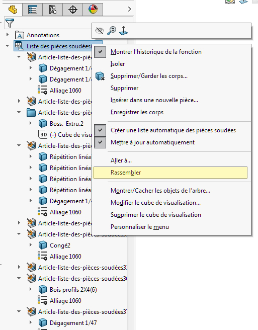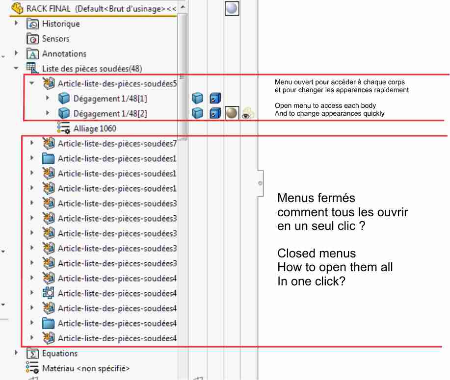 Thank you Fred, but that's not what I want to know. No link with the welded elements, just the list of volumic or surface bodies. I just want to know how to open the list with a single click to see all the bodies that are in the parts files. A year ago I could see all volumic bodies in a simple procedure.